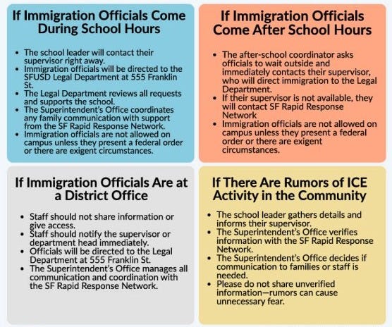 Each school I visited had big signs up about ICE, and clear instructions for staff about what do if immigration agents show up at the school door.