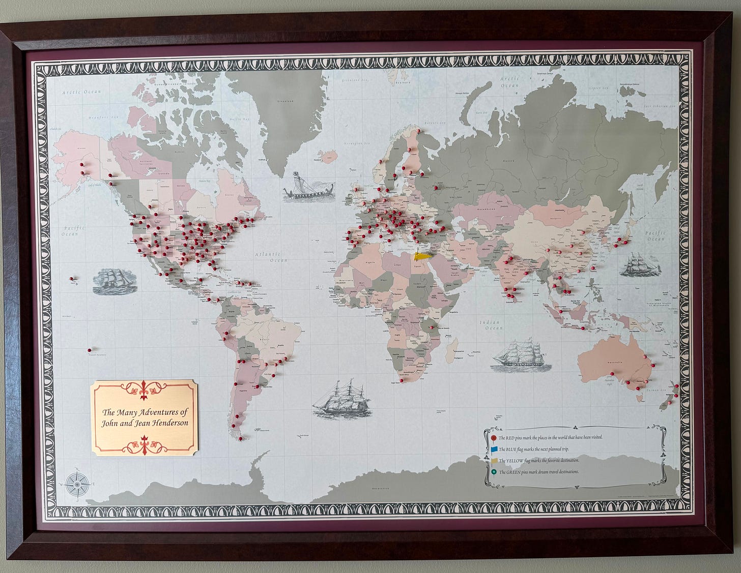 My mom and dad loved traveling together, and made trips to dozens of different countries, eventually visiting every continent except Antarctica. They often stayed with people they met through Rotary’s International Travel & Hosting Fellowship, and regularly hosted guests from around the world at their home. They loved entertaining, especially throwing unique theme parties.